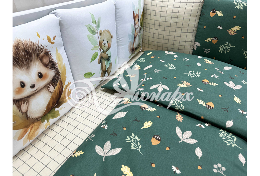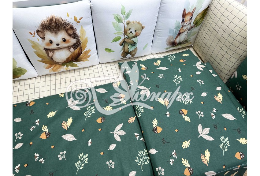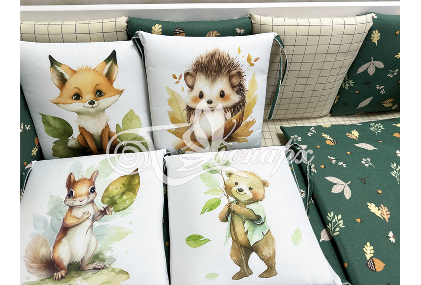 Бортик составной: 12 подушек 31х34 см на замочках упакованы в сумку-переноску.